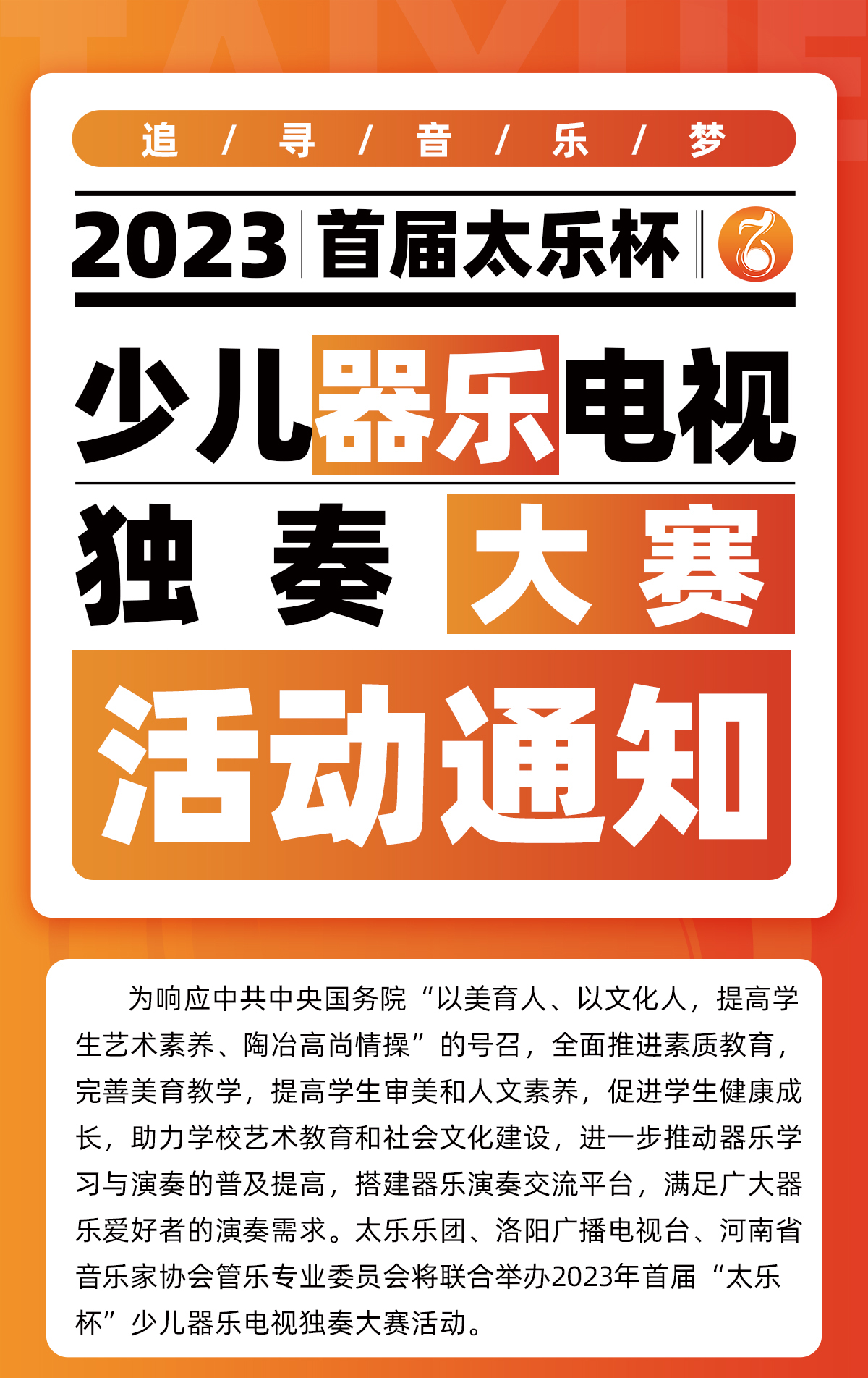2023首届太乐杯少儿器乐电视独奏大赛活动通知