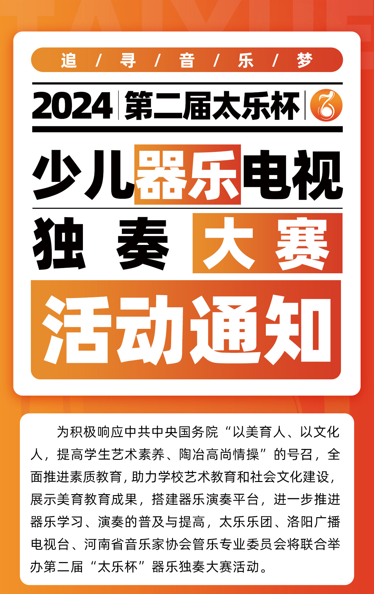 2024第二届太乐杯少儿器乐电视独奏大赛活动通知