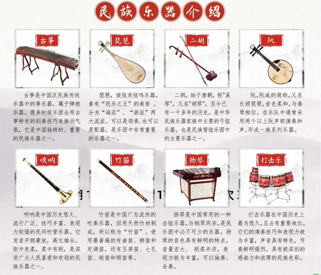 古筝、琵琶、二胡、阮