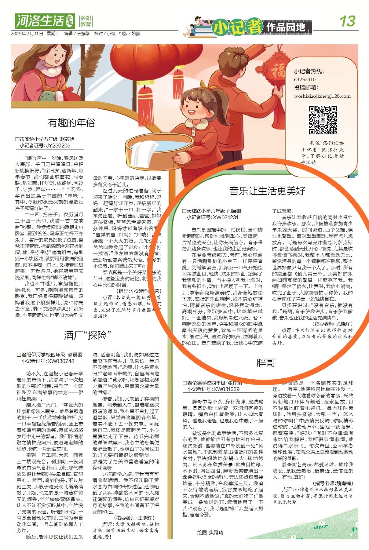 近日,河洛生活导报教育周刊“小记者作品园地”栏目中发表了一篇由天津路小学乐团学生闫展赫同学编写的文章。