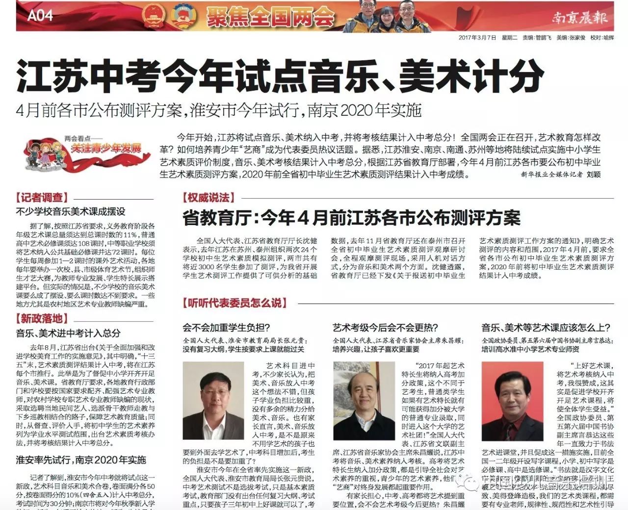 江苏省首将试点音乐、美术纳入中考,并于2020年前全省初中毕业生艺术素质测评结果计入中考成绩。