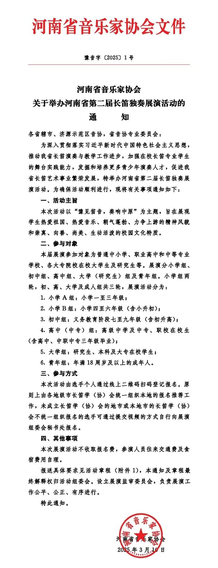 河南省音乐家协会关于举办河南省第二届长笛独奏展演活动的通知
